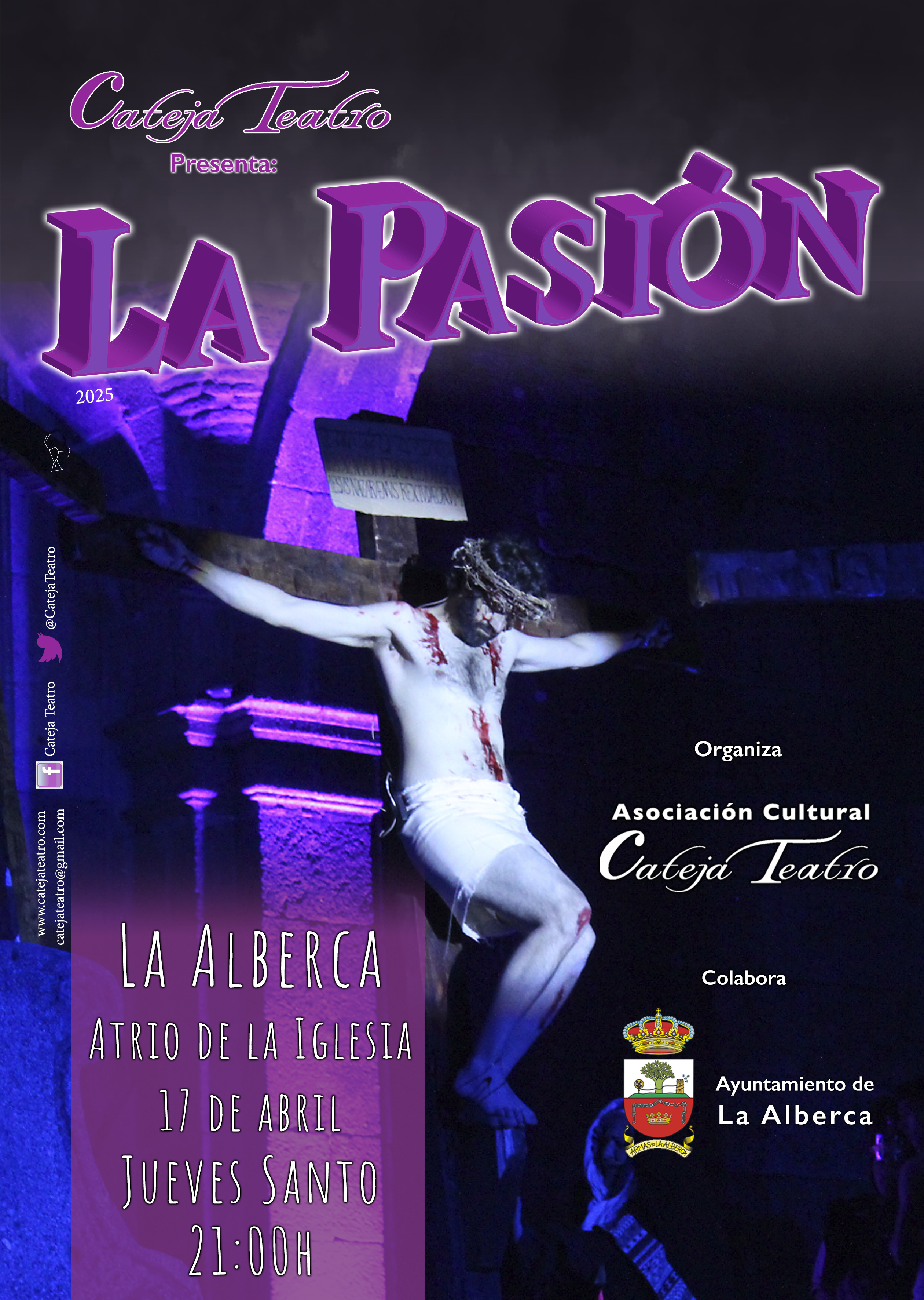 AvisosEl AyuntamientoCulturaEl Pueblo La Pasión Hace 6 meses Representación de La PasiónPor Cateja TeatroDía: Jueves 17 de abrilHora: 21:00hLugar: Atrio de la Iglesia, Solano Bajero